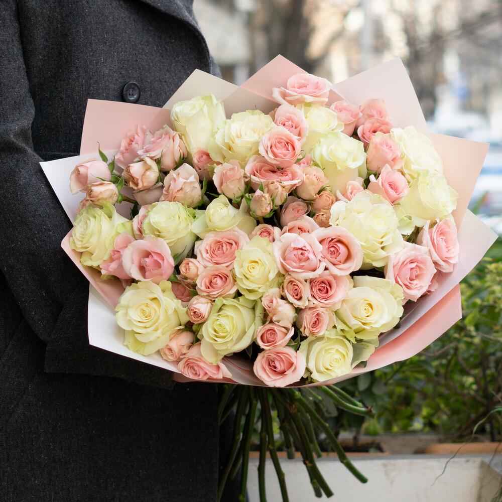 Букет из белой-розовых роз в Дудинке